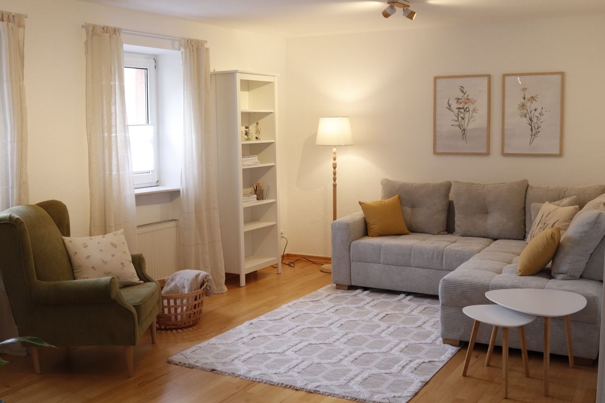 Apartamento de una habitación moderno y tranquilo con baño con luz natural, plaza de aparcamiento y terraza -recientemente renovado- Pequeña unidad residencial (3 apartamentos) *** Internet de alta velocidad *** —Adecuado como «homeoffice»— Totalmente amueblado y equipado. Toallas y ropa de cama disponibles. Todos los gastos adicionales incluidos (excepto los que se indican aquí como «opcionales»): Opcional: —Uso compartido de la estación de carga para coches eléctricos —Uso compartido de lavadora y secadora. —Posibilidad de fumar al aire libre