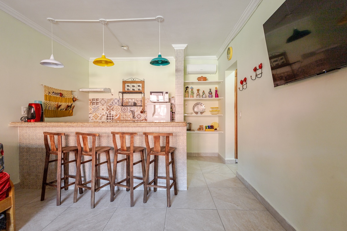 PISO con cocina de reserva y piscina con aire acondicionado Cocina con: microondas, freidora de aire, minibar, cafetera de 3 corazones, mostrador de comedor, secador de pelo, TV, aire acondicionado, wifi de condominio y limpieza diaria; Tiene capacidad para un máximo de 4 adultos (cama tamaño queen + cama individual + dos camas) con la primera ropa de cama incluida (sábanas, toallas de baño y almohadas). Cobertores, partes adicionales cobradas en el momento de la salida. La tarifa NO INCLUYE las comidas.