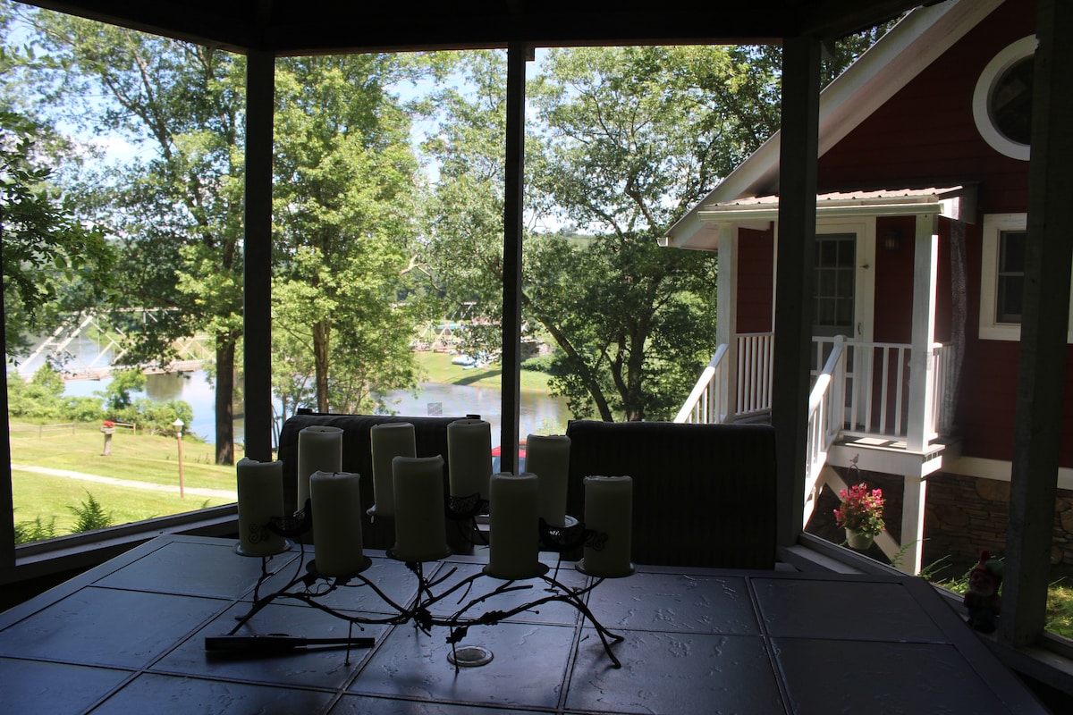 Cabaña Barn de 2 pisos Post & Beam de 1200 pies cuadrados ubicada en más de 18 acres de la propiedad con 1250 pies de fachada que conduce a esta joya. Muebles de madera Amish y una estufa de leña. El concepto de loft abierto en el segundo piso ofrece 1 cama tamaño king, una cama nido con 2 camas individuales (capacidad para 4 personas), 1/2 baño y espacio en el armario. La planta baja ofrece cocina, comedor, sala de estar y baño completo. Parque privado en la propiedad con hamaca, cancha de voleibol y baloncesto, columpio, tobogán y casa de juegos, juegos de patio (en la casa y cobertizo) barbacoa y fogata.