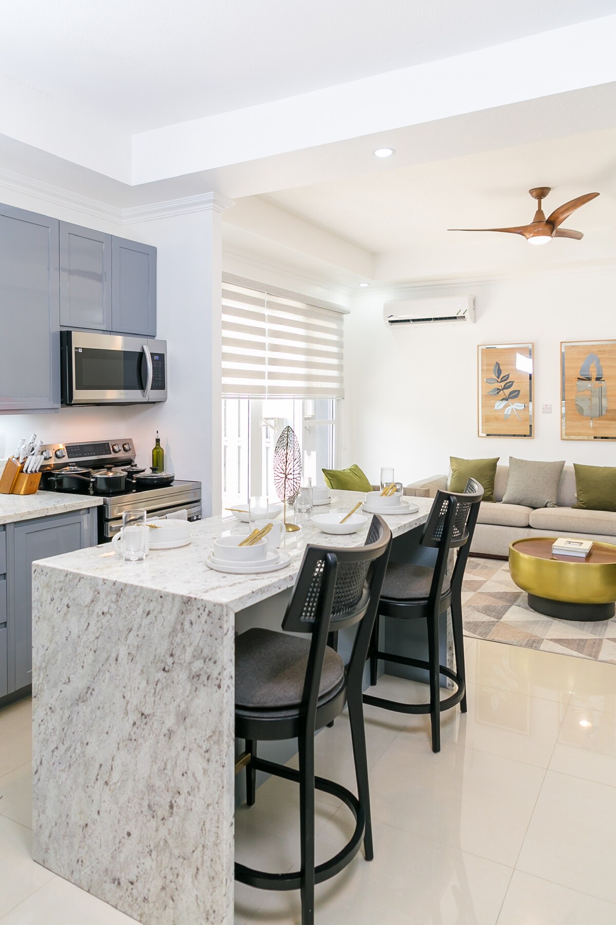 Disfruta de una experiencia relajante en este complejo de apartamentos de estilo resort céntrico, justo enfrente del Estadio Nacional, a 15 minutos del aeropuerto. Muebles y electrodomésticos modernos, cable, Netflix, Amazon Prime, wifi gratuito, aire acondicionado, calentador de agua, complejo cerrado con seguridad las 24 horas, cancha de tenis, pista para correr, casa club, gimnasio, estacionamiento gratuito y césped bien cuidado. Cerca de las principales zonas comerciales, restaurantes elegantes, tiendas de comestibles, el Museo Bob Marley, Devon House y Emancipation Park.