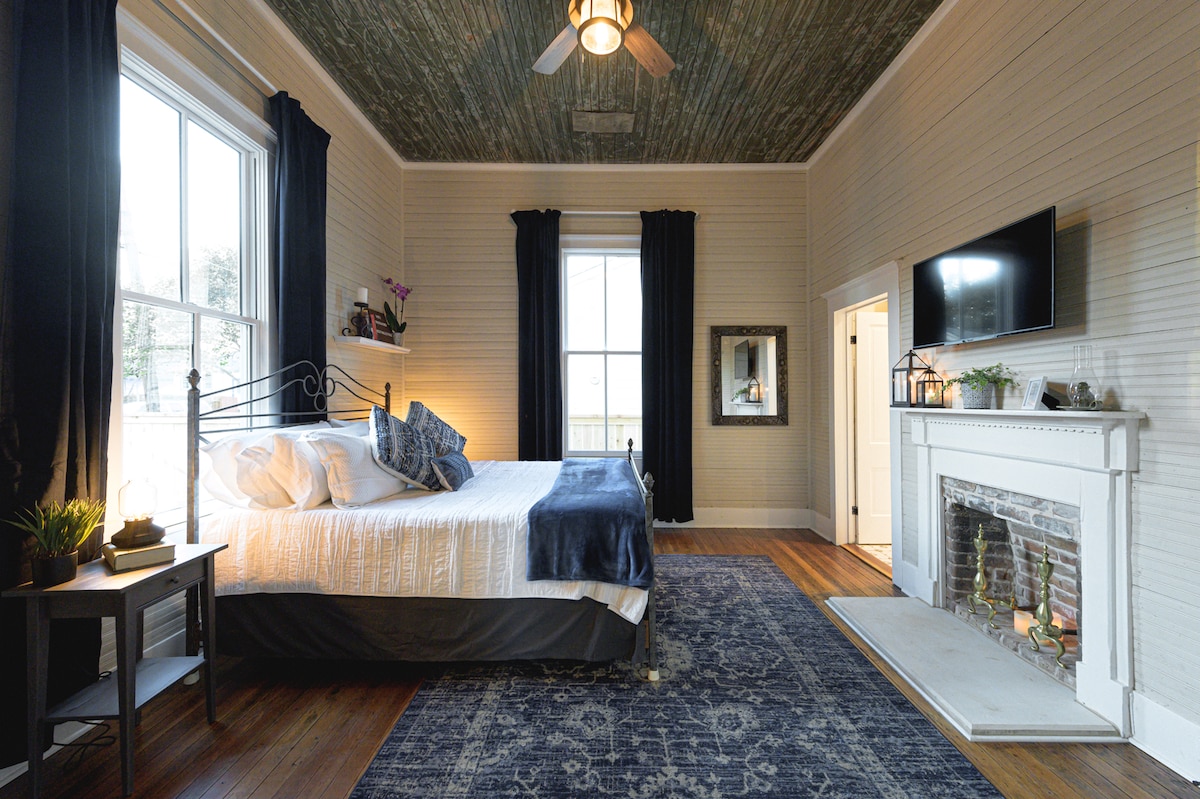 Construida en 1894, esta casa de un dormitorio completamente restaurada cuenta con techos de 12', paneles de tableros de perlas originales y un baño enorme. Relájate en la bañera con patas o prepara una deliciosa cena en la cocina totalmente equipada. El enorme patio trasero vallado es un lugar estupendo para pasar el rato y hacer una barbacoa en la parrilla proporcionada. Termina el día en la cómoda cama tamaño king y cualquier huésped adicional puede usar el futón o el colchón de aire en la sala de estar. A solo 4 manzanas de los Silos y justo al otro lado de la I-35 desde Baylor.