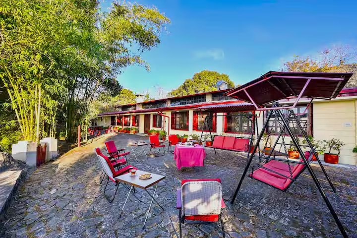 Situada en las serenas colinas de Mukteshwar, esta encantadora casa de campo familiar ofrece la escapada perfecta de la vida urbana. Rodeado de vegetación verde y enmarcado por majestuosas vistas del Himalaya, este acogedor refugio está diseñado para familias y grupos que buscan reconectar con la naturaleza con comodidad. Los grandes ventanales en toda la cabaña llenan el espacio con luz natural y proporcionan vistas ininterrumpidas del exuberante entorno, creando una sensación de tranquilidad y conexión con la naturaleza.
