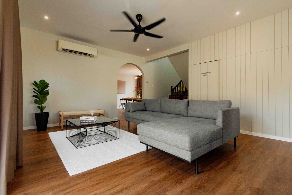 Bienvenido a Calme Luna Suite, con 4 dormitorios y una impresionante piscina orientada al frente. Situado a poca distancia del centro de la ciudad y de las atracciones de Kuala Terengganu, nuestro alojamiento ofrece la combinación perfecta de lujo y comodidad para tu escapada. Entra y descubre un interior moderno con amplios espacios interiores y exteriores diseñados para la relajación y la socialización. La sala de estar de planta abierta es perfecta para reuniones familiares, con cómodos asientos y un comedor donde podrás disfrutar de las comidas juntos.