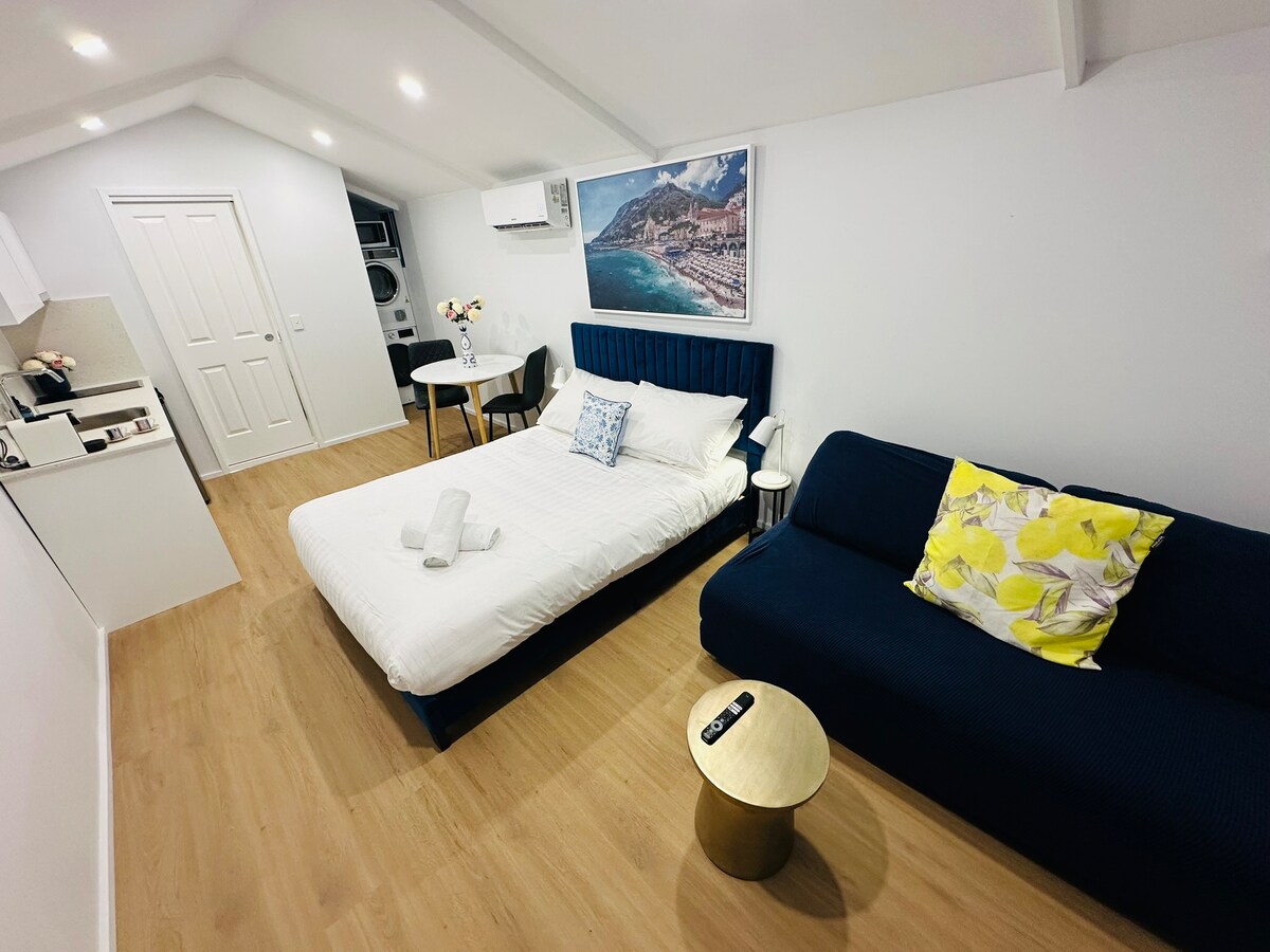 Kick back & relax in this Private Detached Stylish Studio Apartment, Aircon. Sleeps 2 guests. Perfect for Long or Short term stays. 1 Luxury Queen size beds. Fully equipped kitchen with European appliances, Tea & Nespresso Coffee machine, Courtyard. 2 mins from Westfields Shopping Mall. Restaurants & cafes at your fingertips. 5 mins drive to M4 & M7. Close to all public transport. 43 mins from Sydney Airport & CBD. 4 Mins drive or a 15 min walk to St Mary's Train Station. Blue Mountains 20 mins.