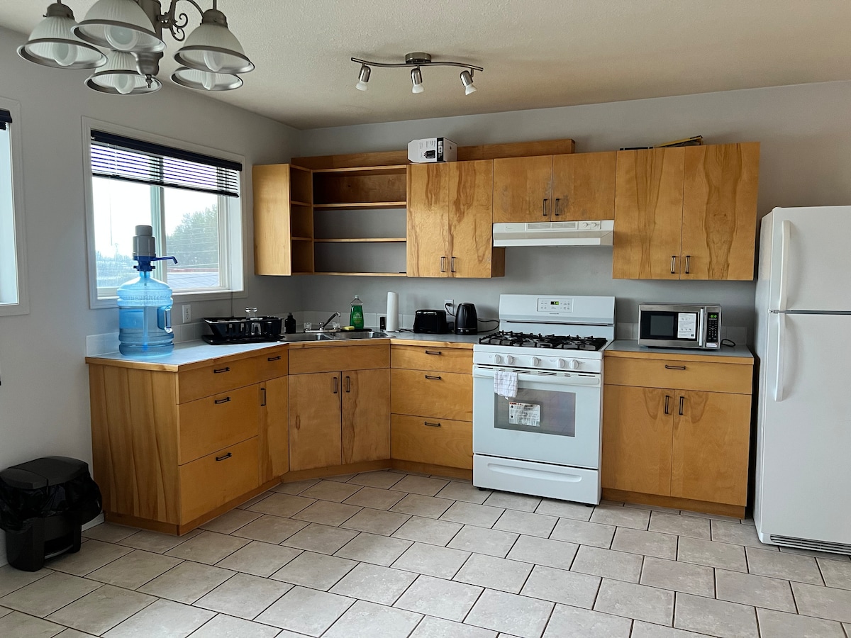 Apartamento en Central High Prairie Bienvenido a tu acogedor refugio en 5043 52 Ave, perfectamente situado en el corazón de High Prairie. Este apartamento cuenta con cómodos pisos con calefacción y una cama tamaño queen para una gran noche de sueño. Disfruta de una noche con un televisor inteligente e Internet de alta velocidad, mientras que un ventilador de torre portátil te mantiene fresco en los días cálidos. Para tu comodidad, encontrarás una tienda de comestibles, un cine y un gimnasio a pocos pasos. Disfruta de una estancia cómoda y relajante en una ubicación céntrica.