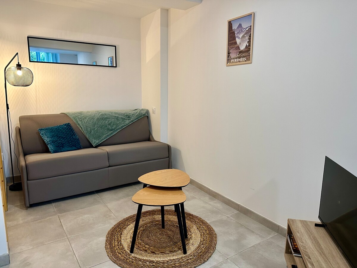 La Suite Única: «El jardín en los Pirineos»: le da la bienvenida a un apartamento de 2 habitaciones reformado, con su jardín cercado y arbolado de 100 m2, que ofrece una vista excepcional de los Pirineos, también puede relajarse en las tumbonas, cenar fuera o darse un chapuzón en la piscina (verano). La cocina está súper equipada, placas, horno, microondas y lavavajillas. Por la noche, una cama espaciosa de 160 cm o 2 camas de 80 cm. Un verdadero sofá cama con somier para 2 personas.