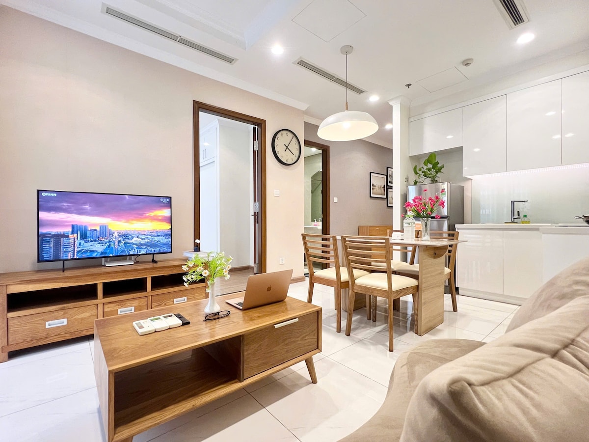 Bienvenido al Landmark 4: ¡tu estancia perfecta en el corazón de la ciudad de Ho Chi Minh! - 2 habitaciones espaciosas con camas acogedoras y de alta calidad para un sueño reparador. - Un espacio bellamente diseñado para la máxima relajación y comodidad. - Wifi de alta velocidad para mantenerte conectado en cualquier momento y lugar. - Aire acondicionado y un televisor inteligente para una ubicación privilegiada fresca y entretenida con fácil transporte para explorar las mejores atracciones de la ciudad.