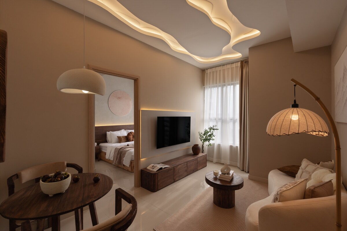 Experimenta NU Lumiere 2BR, un moderno apartamento de 2 dormitorios en An Phú, Thảo Điền. Cada unidad cuenta con un amplio balcón con vistas al río, interiores elegantes y luz natural. Los huéspedes disfrutan de acceso a una de las piscinas más hermosas de Saigón, un gimnasio completo y seguridad las 24 horas. A solo 15 minutos del centro de la ciudad, con acceso directo a la línea 1 del metro para facilitar las conexiones en toda la ciudad, ideal para viajes de negocios o estancias relajantes.