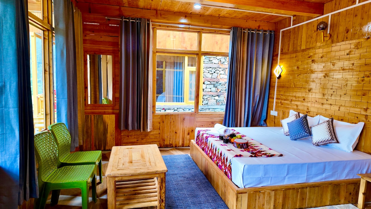 🌲 Escape to Tranquility in Sainj Valley Welcome to our cozy hand-crafted wooden cottage nestled among apple orchards and pine trees in the serene village of Manyashi, Sainj Valley. ⛰ What You'll Love: • Stunning views of snow-capped peaks from your private balcony • Fresh mountain air and peaceful surroundings — ideal for a digital detox or a romantic getaway • Beautiful wooden interiors with large windows and natural light • Wake up to the chirping of birds and fall asleep under a starry sky