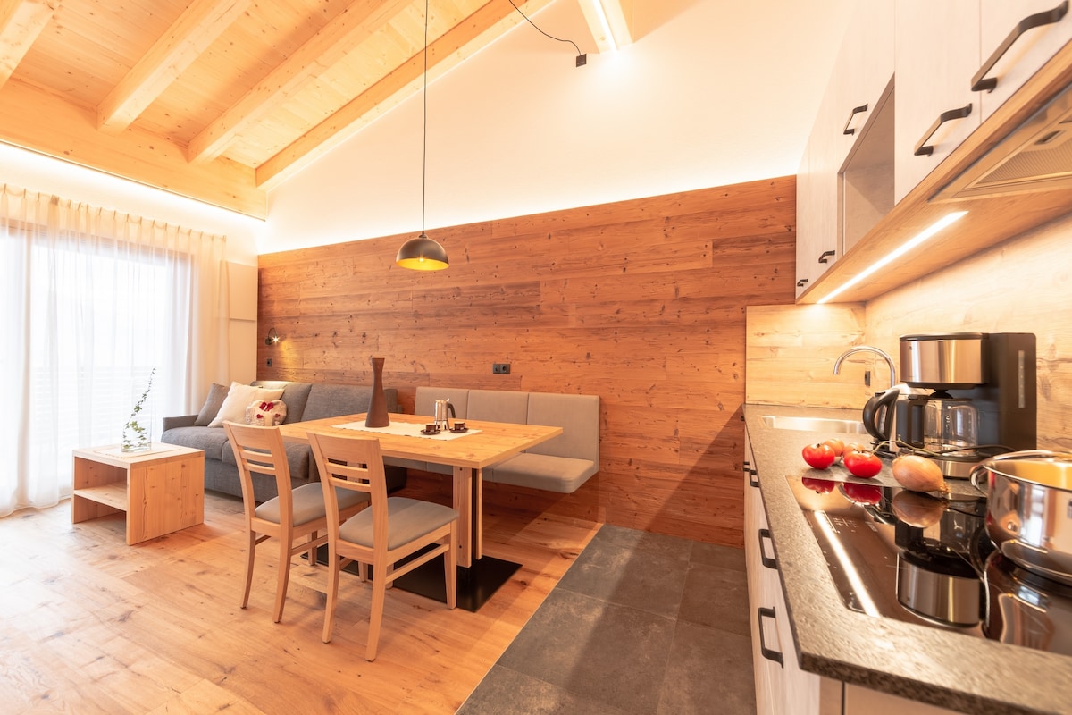 This charming apartment "Golden Hill der Carmen Stoll" captivates with a picturesque garden and a stunning view of the Dolomites, offering you a retreat in the midst of nature. 🌄Experience the relaxing atmosphere of the garden, enjoy the amenities of the wellness area, or be enveloped by the stylish and cozy interior design. At 'Golden Hill', our aim is to ensure a completely delightful and pampering experience.
