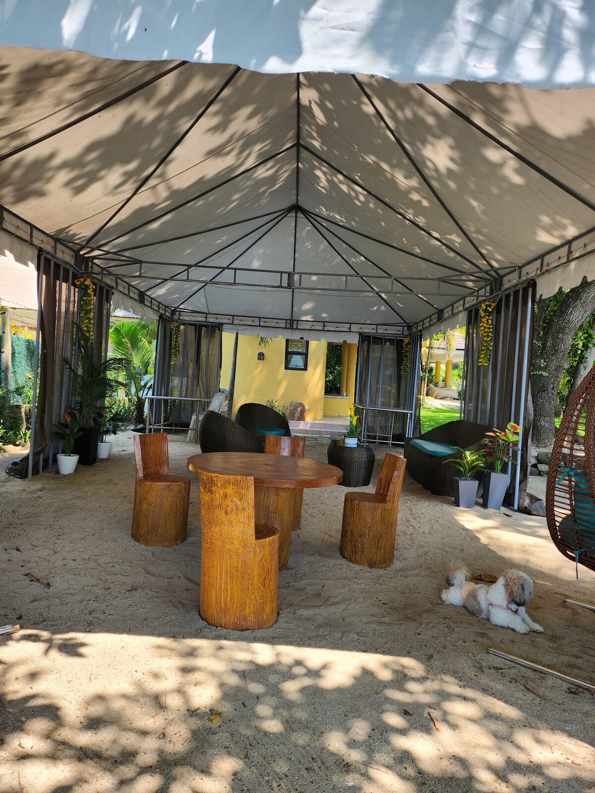 La casa frente a la playa de Shachi se encuentra en Lian, Batangas, tiene acceso directo a la playa de Ligtasin y a la costa que corre a lo largo del mar y te permite llegar a otras playas y a Matabung. Trae a la familia y a los amigos a esta maravillosa casa para una escapada relajante a la playa. Disfruta del exuberante jardín verde con áreas de estar a la sombra de un gran y encantador árbol Talisay. La propiedad también cuenta con un cenador con jacuzzi y bar junto con zonas para tomar el sol con vistas al mar.