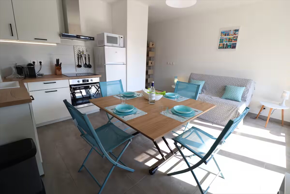 Acogedor estudio perfectamente situado en primera línea de mar con unas vistas inmejorables al mar y al cabo de Antibes. Le gustará tanto por su ubicación frente al mar, con acceso directo a las playas de l'Ilette y Salis, como por su proximidad al casco antiguo y sus calles típicas, murallas, puerto y restaurantes. Situado en un paseo que conecta el casco antiguo de Antibes con el cabo de Antibes, disfrutará de una estancia tranquila con los pies en el agua.
