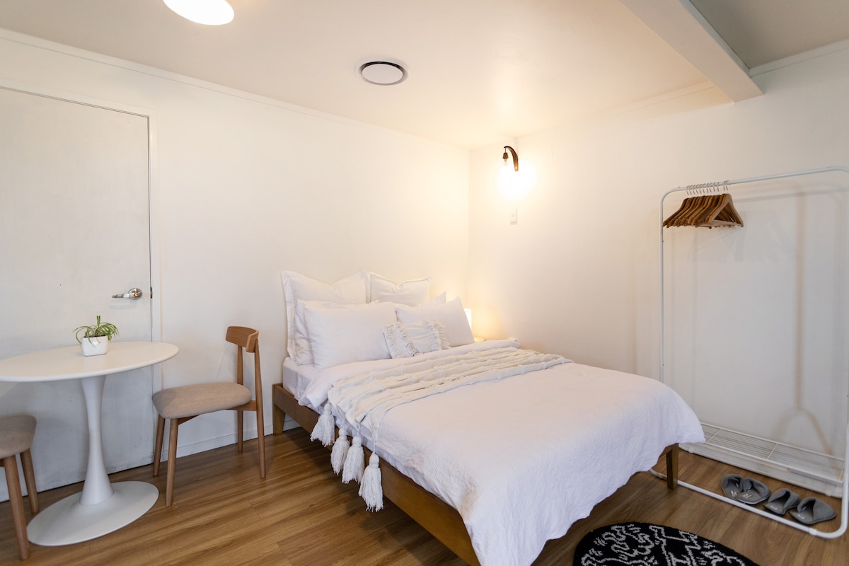 A solo 15 minutos del CBD y hermosos paseos por la playa en la calle, esta ubicación es ideal para tu estadía en Auckland. Con un baño moderno y una cocina americana totalmente equipada (nota: sin estufa), tendrás la flexibilidad de comer fuera o dentro mientras disfrutas de nuestras tranquilas vistas al patio trasero y de la cama tamaño king. Ofrecemos WIFI de fibra rápida, así como una selección de cereales para el desayuno y estacionamiento fuera de la calle. El check-in con caja de seguridad para llaves significa que tendrás total privacidad para ir y venir cuando te convenga.