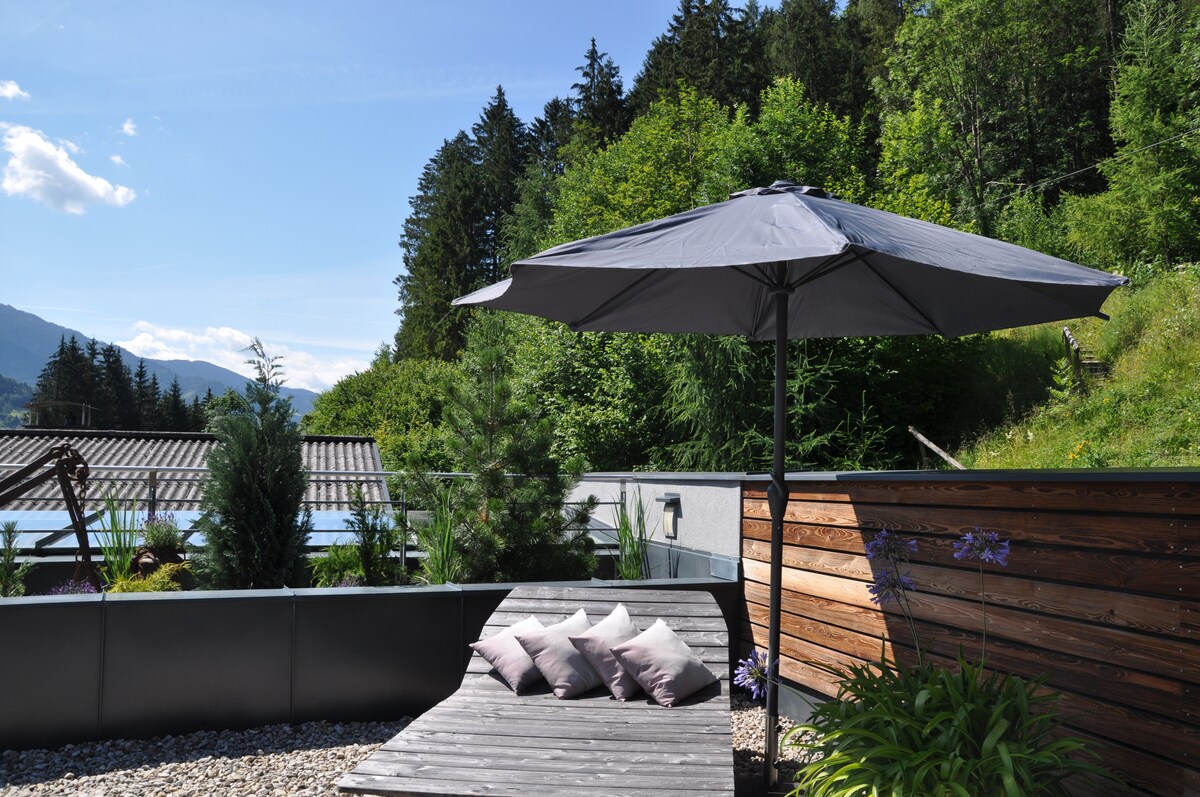 Apartamento moderno (sótano luminoso), ideal para practicar senderismo, ciclismo de montaña, relajarse y esquiar, a 1400 metros, por encima de Mühlbach am Hochkönig, una ubicación de vacaciones genial - Directamente en la estación de esquí, ciclismo de montaña o senderismo (ascensor enfrente y debajo de la casa) frente al impresionante paisaje montañoso del Hochkönig y el Mandlwände Autobús de esquí gratuito Aparcamiento gratuito en frente de la casa El precio también incluye el impuesto turístico.