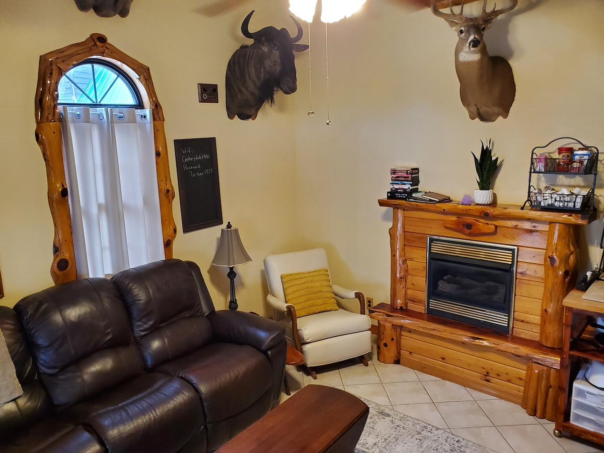 Crea una experiencia: te damos la bienvenida a The Bronze Gabel Cabin. Escondido en el área de Salem/Rolla, este bosque de 15 acres es una escapada única que te espera. Explora la cercana playa de Fugitive, el río Current y el hermoso parque estatal de Montauk. Lo más destacado de la cabaña es la terraza superior envuelta para una noche de cine al aire libre memorable o relájate con tu café tostado localmente. Por la noche, siéntate alrededor de la chimenea y escucha los sonidos de los Ozarks. El Bronce es único y un refugio perfecto para parejas.