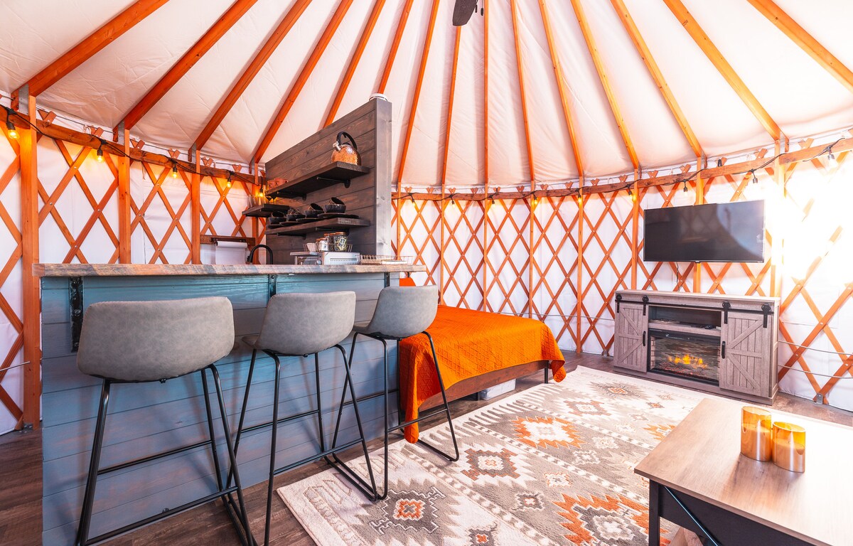 Glamping que admite mascotas en 1 de 2 yurtas privadas junto al Bosque Nacional Mark Twain, ¡es el lugar perfecto para escapar! Relájate con todos los sonidos de la naturaleza que te ofrece el Bosque Nacional Mark Twain. ¡Disfruta de las impresionantes vistas de 360° y del entorno tranquilo desde la cubierta envolvente de 30'X30'! Pasa tus días haciendo senderismo, kayak y todas las cosas que ofrece la zona y tus noches alrededor de la fogata, contemplando la puesta de sol y las estrellas. Si te gusta acampar y disfrutar de comodidades modernas, te encantará este lugar.