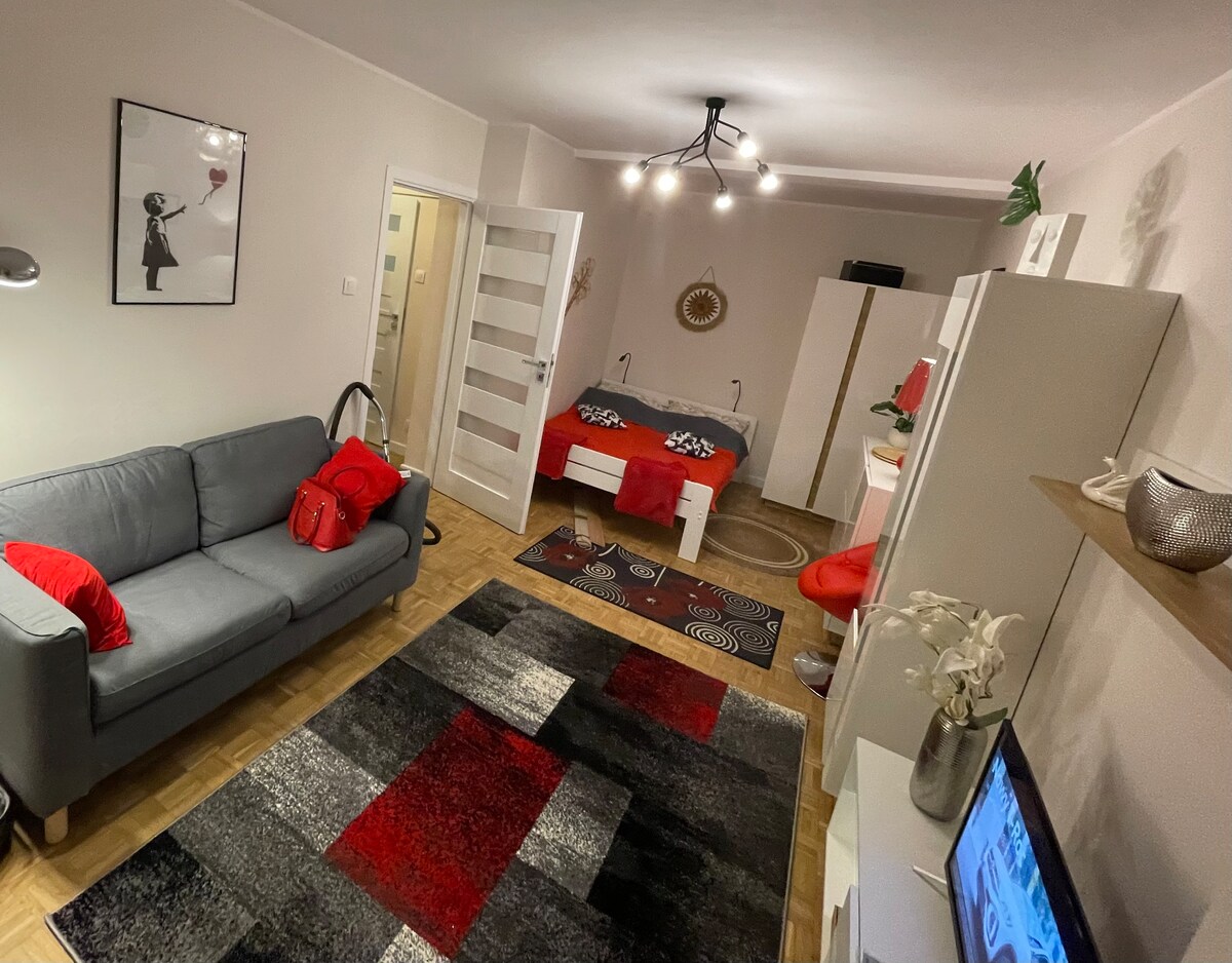 Apartamento cómodo y totalmente equipado en un edificio nuevo. Sala de estar con cocina abierta dividida en comedor y sala de estar. El dormitorio tiene una cama grande y un armario espacioso. También hay un armario como espacio de almacenamiento adicional. En la zona hay tiendas, restaurantes y cafeterías. Equipamiento: aire acondicionado, cafetera, hervidor de agua, plancha, tabla de planchar, lavadora Cómo llegar desde el aeropuerto de Chopin 20 minutos en taxi 50 minutos en transporte público desde el aeropuerto de Modlin 50 minutos en taxi 120 minutos en transporte público