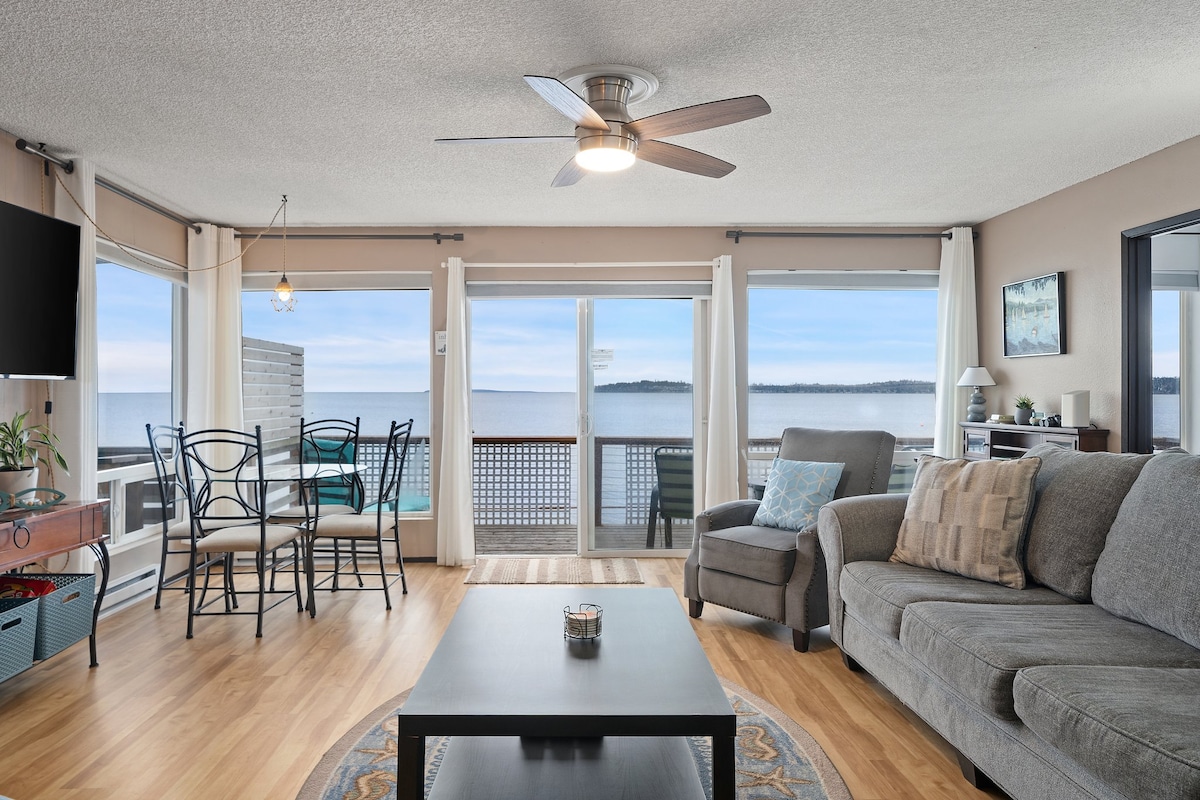 Apartamento en primera línea de playa en la planta baja de Beachwalker Villa en la playa de Semiahmoo en Blaine, WA. Aprox. 1500 pies cuadrados, 2 dormitorios, 2 baños completos, sala de estar, cocina y estudio, capacidad para 6 personas. Los huéspedes pueden disfrutar del acceso a la playa directamente desde el patio. A 5 minutos a pie del Semiahmoo Resort & Spa. Un campo de golf Arnold Palmer está a 5 minutos en coche. Los huéspedes pueden disfrutar de acceso a la cancha de tenis y voleibol. Senderismo, ciclismo, paseos en bote, kayak, puestas de sol, playa, todo está aquí. Nuestro apartamento se encuentra en una comunidad cerrada.