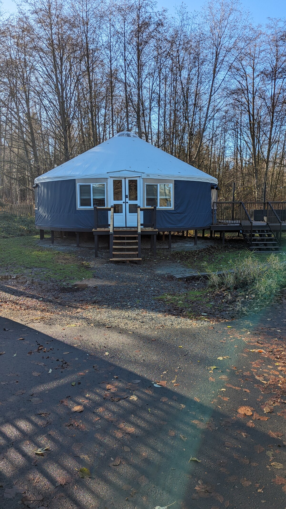 Hidden Pasture Bungalow se encuentra en el campo de Ferndale, a 20 minutos del corazón de Bellingham. Estamos situados en una propiedad rodeada de campos y árboles. Disfruta de tu propio espacio de estudio en la planta superior sobre nuestro garaje adjunto con entrada privada y baño privado. Cocina pequeña con nevera y microondas, tostadora, cafetera, sartén eléctrica y tetera eléctrica; platos y utensilios. TV con DishNetwork. Wifi disponible. ¡Siéntate en el balcón y disfruta de las vistas! No se admiten mascotas. Consulta las normas de la casa.