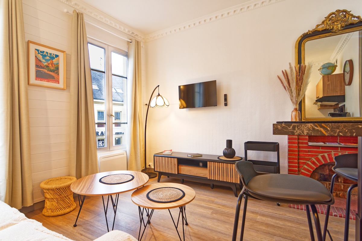 ¡Hola y bienvenido a tu estudio en pleno centro de Caen! A pie: 10 minutos de la estación de tren A 10 minutos del castillo de Caen. A 10 minutos del puerto 3 minutos de las orillas del Orne 2 minutos de la pradera Te sentirás como en casa en este estudio reformado, totalmente equipado y amueblado. Tiendas y restaurantes, bar de billar, bodega, gimnasio, etc. están en las inmediaciones de la calle Saint Jean (Carrefour Express, Orient Express, Basic Fit, Nicolas...)