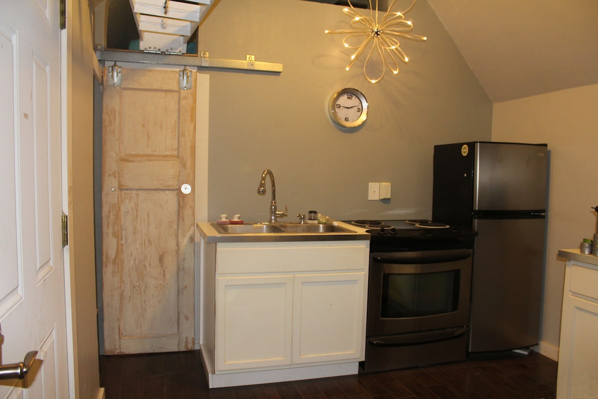 Come and go as you please from this completely remodeled private entry suite. Quiet neighborhood less than 1 mile to south campus. Enjoy a queen size platform bed and walk-in shower. Cozy and clean. Your space shares a wall with our home’s den. (with newly installed insulation and a solid core door to deter sound though we can’t guarantee you won't hear our small children.)