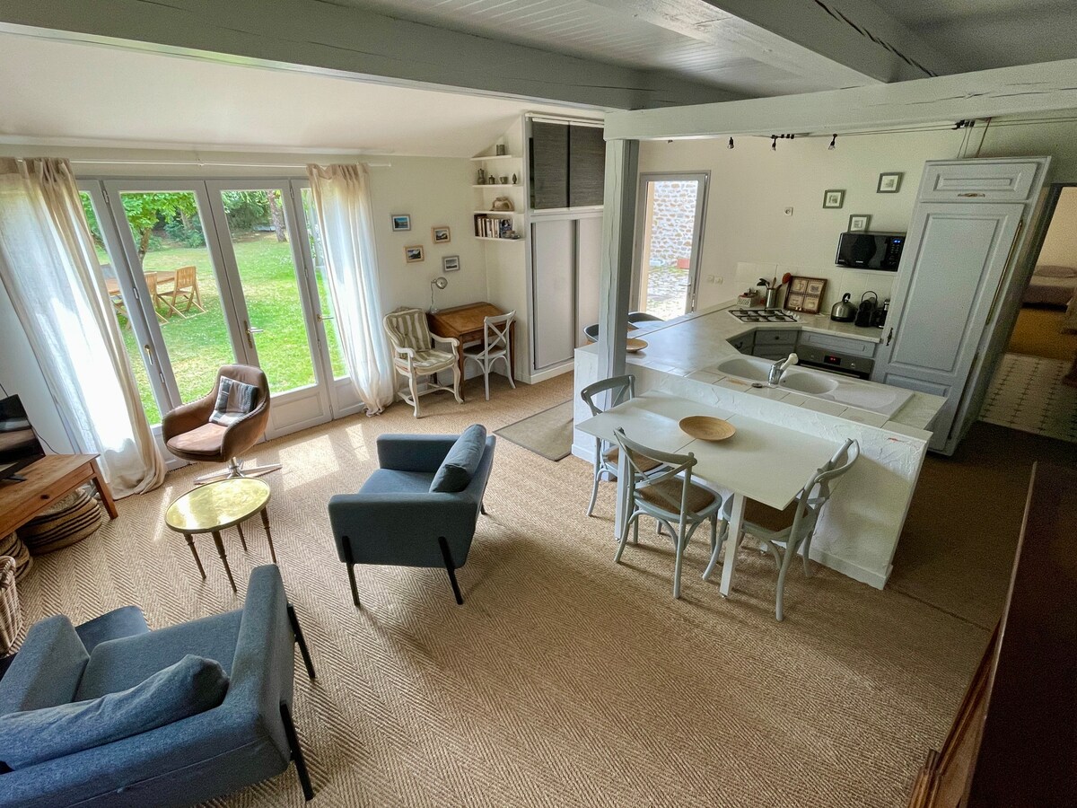 Entras en el jardín desde la calle a través de una pequeña puerta discreta. Cruzas un pequeño patio pavimentado y con flores antes de descubrir dónde está oculta la casa. En una zona muy tranquila, se encuentra en la parte trasera de un gran jardín amurallado, a un kilómetro de la estación y las tiendas, y a 400 metros del bosque. Perfecta para una estancia con familiares o amigos, la casa también es ideal para trabajar a distancia, ya que tiene una conexión a internet de fibra óptica.