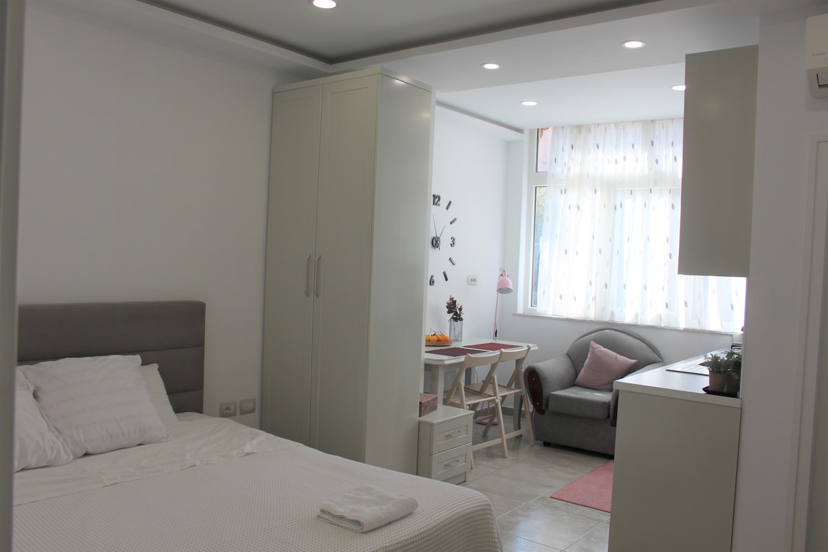 A 15 minutos a pie del centro de Tirana y a 5 minutos a pie del estadio Air Albania y de la entrada del lago Tirana, ubicado en una de las zonas más seguras de Tirana (justo después de la embajada de los Estados Unidos), ¡nuestro departamento te da la bienvenida! Una cocina totalmente equipada con horno, microondas, licuadora y nevera. Dormitorio con TV Samsung de 43pulgadas con Netflix incluido, aire acondicionado, escritorio y una hermosa vista desde el balcón. Considera antes de reservar, no hay ascensor y el departamento está ubicado en el quinto piso.