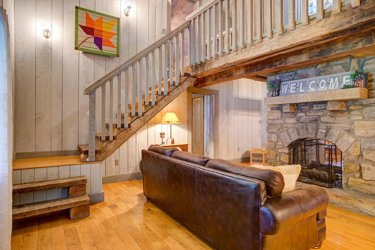 Ubicada entre los árboles, Blue Haven Log Cabin se encuentra en lo alto de una colina inclinada y da la bienvenida a aquellos que buscan esa escapada perfecta para conectarse con tus seres queridos, ya sea en el gran porche delantero con vistas a las montañas o en el patio de abajo. Una chimenea de piedra y muebles rústicos le dan una sensación de días pasados . La gran vidriera en el alero de un techo de catedral de 22 pies arroja todos los tonos de azul sobre el techo, el loft y el suelo en diferentes momentos del día. Hospeda al lado si es necesario.