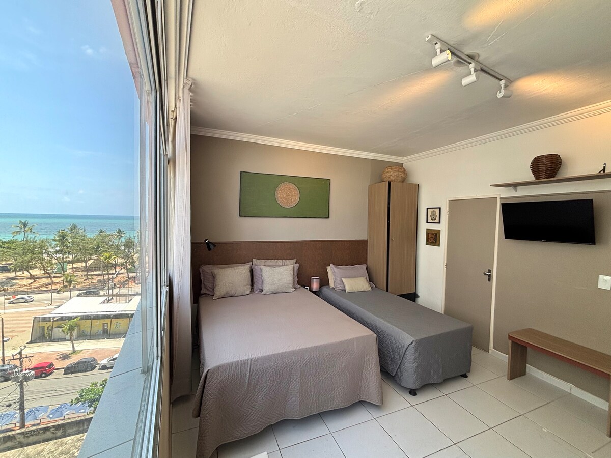 Apartamento situado en uno de los mejores hoteles de Recife – Radisson Recife (antiguo Beach Class) Localizado frente al mar en el piso 16. Seguridad 24hs. Taxis disponibles 24hs en la recepción del hotel. El apartamento cuenta con terraza frente al mar, cama matrimonial y sillón cama en ambiente integrado, baño privado (con secador de cabello), cocina equipada (mesa para 4 personas, cocina, sandwichera, microondas, tostadora, cafetera) Televisión de 55 pulgadas con cable. Aire acondicion