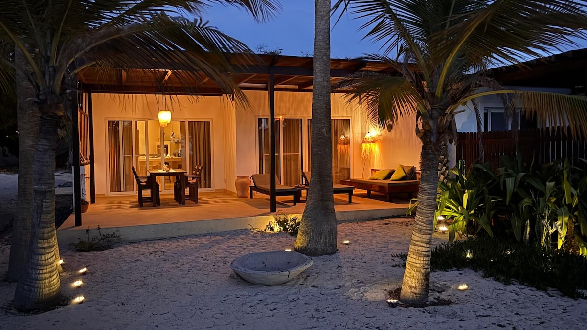 Casa nueva a pocos pasos de la playa, en el condominio Parque das Dunas, rodeada de vegetación tropical, a 10 minutos de las famosas y hermosas dunas de Chaves: dos dormitorios dobles con baño privado, sala de estar con cocina abierta, terraza con jardín privado. Estilo boho-chic, para personas que aman la naturaleza y la relajación. El traslado al aeropuerto está incluido en el precio.