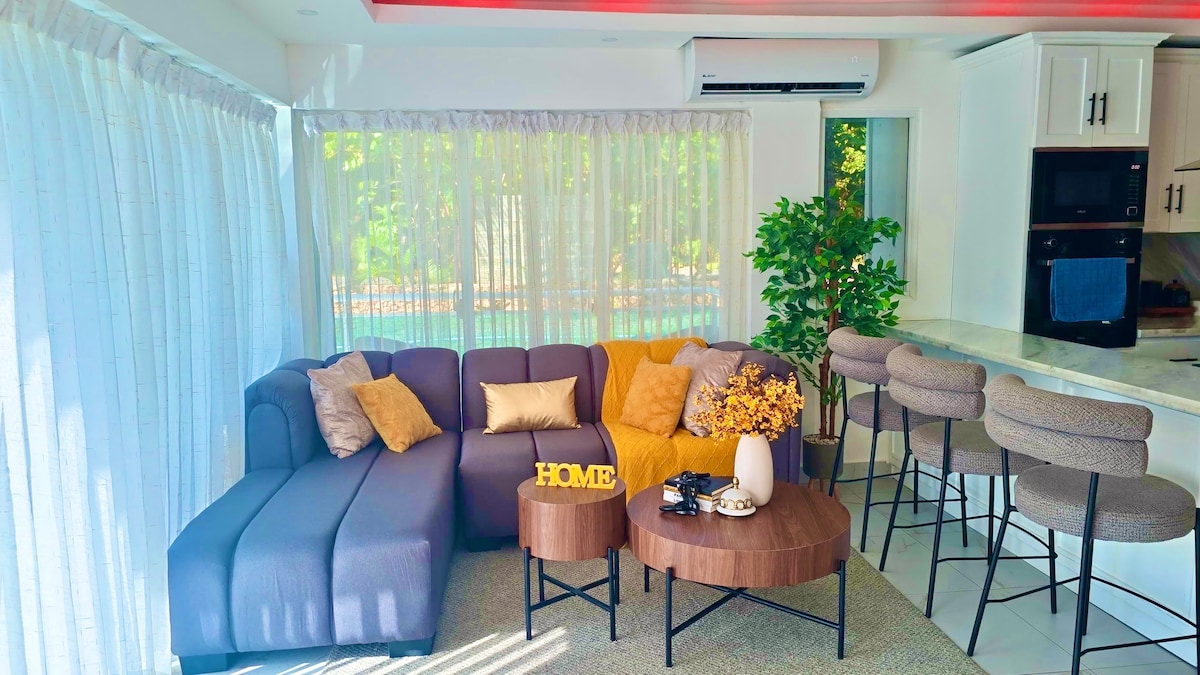 Este elegante apartamento ofrece una experiencia tecnología con características de hogar inteligente, que incluyen una velocidad Wi-Fi de 200 Mbps, TV inteligente y un sistema de sonido en todo el espacio, incluido el área de la azotea para momentos familiares tranquilos. Disfrute de un jacuzzi para seis personas y dos versátiles cocinas frías y calientes equipadas con todos los electrodomésticos, junto con una parrilla de barbacoa para reuniones encantadoras.