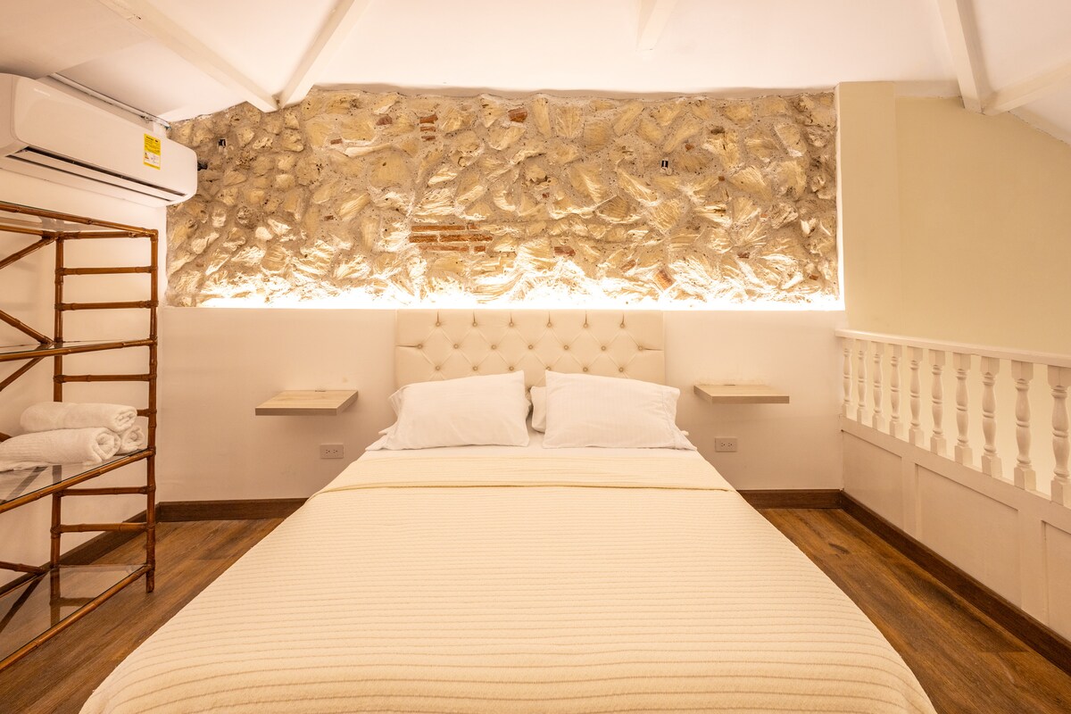 Disfruta de una experiencia inolvidable dentro de las murallas cartageneras. Este loft está ubicado en uno de los edificios más emblemáticos y patrimonio historico de la ciudad, a cortas distancias de los mejores restaurantes, café, sitios turísticos, esparcimiento y diversión. Ven y conoce un poco de nuestra historia y descansa en un lugar limpio y con las comodidades de tu hogar.