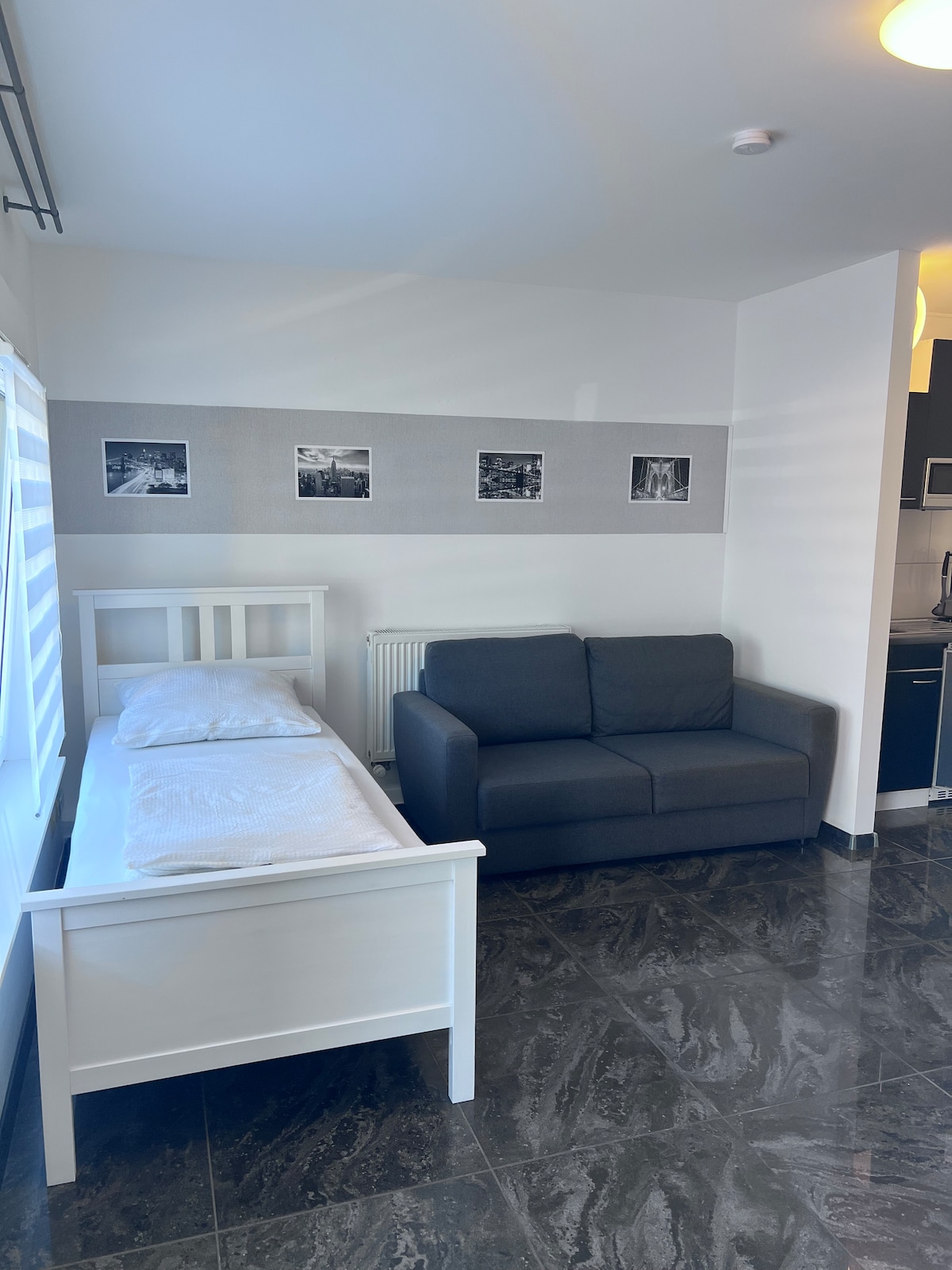 Rodeado de viñedos y a solo 30 minutos del aeropuerto de Frankfurt, Bodenheim es un lugar donde puedes relajarte en paz y tranquilidad y, sin embargo, estar a solo unos kilómetros de la capital del estado, Mainz. Tienes una cama de somier tamaño king con 180 x 200 cm a tu disposición, así como un sofá cama, que puede alojar a otros dos huéspedes en un área de 140 x 200 cm. Ambos están ubicados en una sala de estar y dormitorio de más de 35 metros cuadrados.