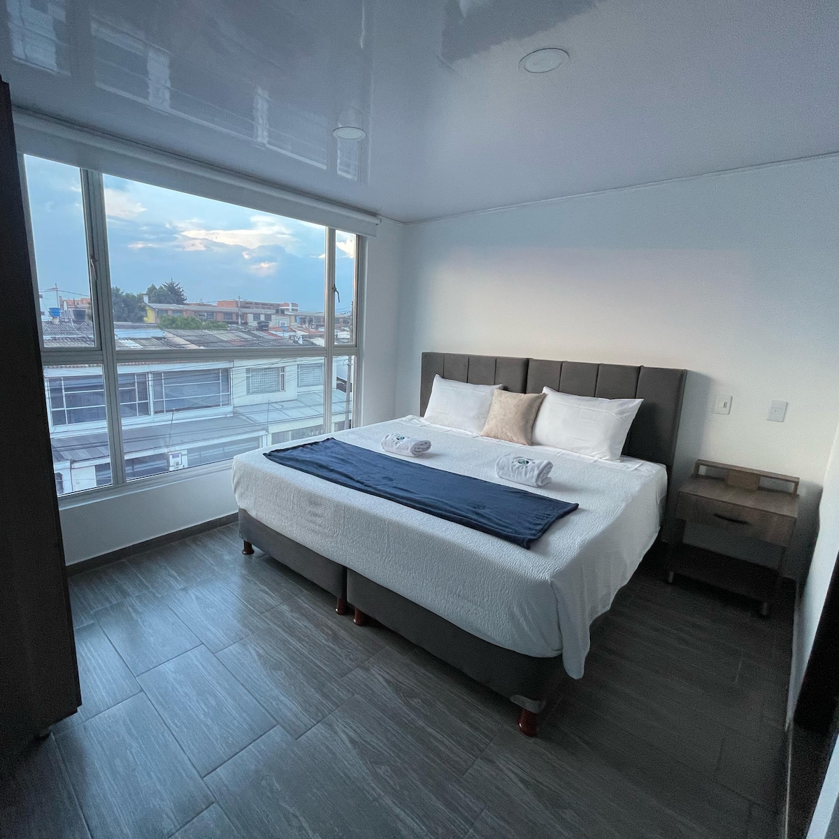 Habitación en Hotel Boutique, ubicado en el barrio de Palermo en la localidad de Teusaquillo, en un sector residencial, a minutos a pie de Clínica Palermo, centro de la ciudad , al estadio el Campin, el Movistar Arena, el Aeropuerto. La habitación cuenta con baño privado , escritorio, tv 32 pulgadas smart y cerraduras inteligentes. Seguridad nocturna.