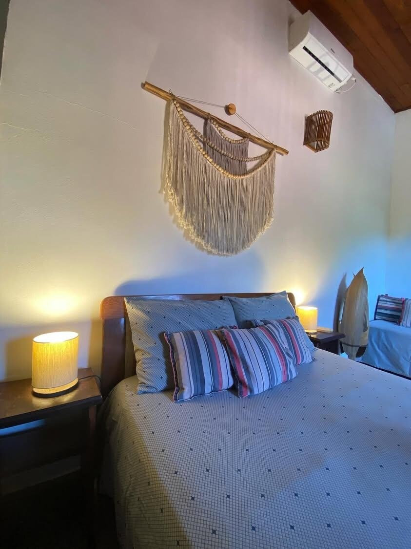 ¡Disfruta de la sencillez de este alojamiento tranquilo y céntrico en la isla de Boipeba! Esta acogedora casa de campo ofrece un área de espacio abierto con cocina completa, baño, cama tamaño queen, aire acondicionado, terraza privada y jardín. Estamos situados en una calle tranquila rodeada de naturaleza. A poca distancia a pie de: - A 400 metros de la plaza principal de la ciudad. - A 200 metros del punto de todoterreno que conduce a todas las playas. - A 10 minutos a pie de la playa Boca da Barra. - Fácil acceso a la playa de Cueira.