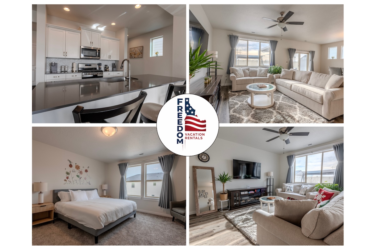 Disfruta del lujo de una espaciosa casa nueva durante tu estancia. Toda la casa de tres dormitorios, 2,5 baños, lavadora y secadora en la casa. Mantén tu coche protegido de la intemperie y en el garaje para dos coches. Patio trasero privado y vallado con patio. Una casa hermosa, limpia y totalmente nueva con mucha luz solar natural. Ubicado en el centro entre The Village (centro comercial al aire libre, bolera, cine) y Boise Towne Square (centro comercial interior). Cerca de dos cafeterías (Dutch Bros y Starbucks).