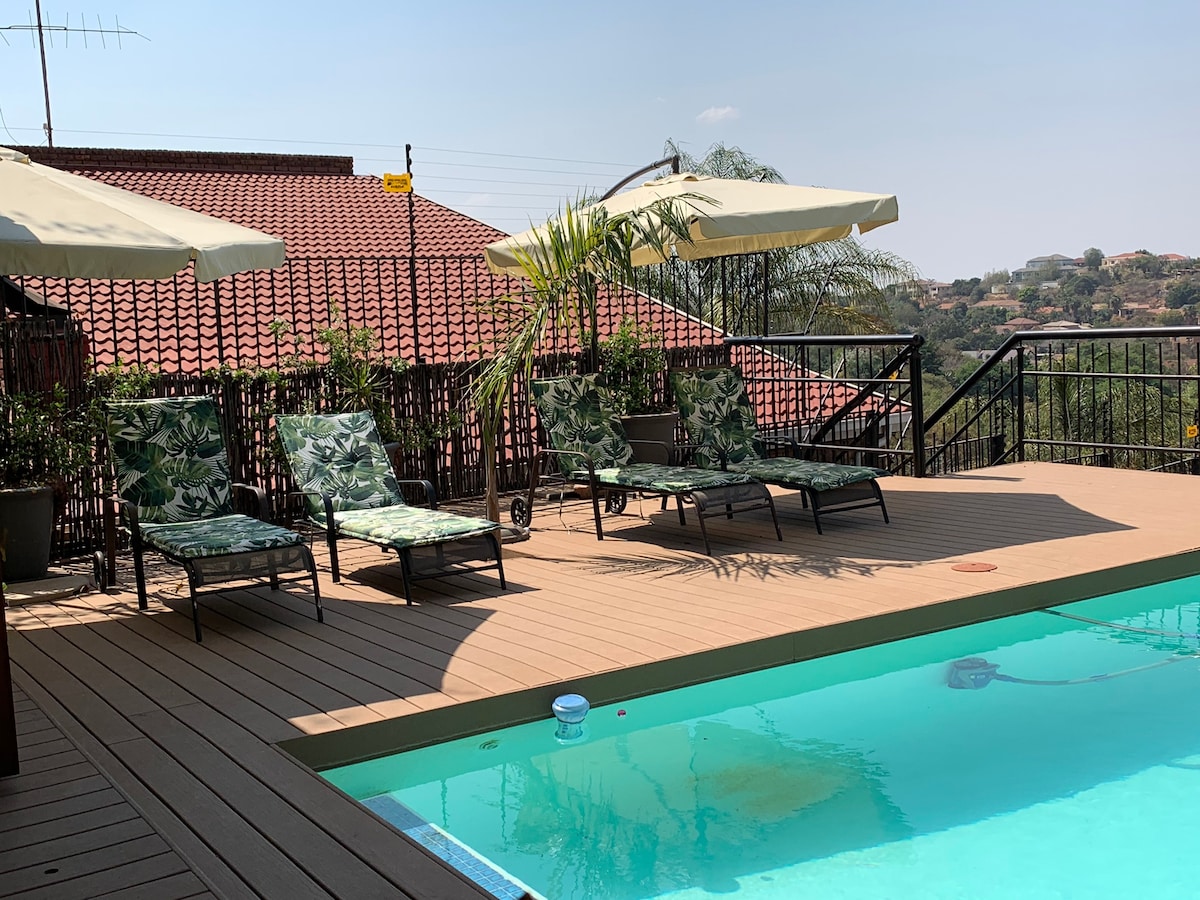 Esta casa de huéspedes está situada en una zona tranquila y en auge cerca del distrito financiero de Sandton. Se encuentra en medio acre de jardín bien mantenido con un patio muy grande, zona braai y piscina. Aunque la habitación está arriba, se accede a través de una amplia escalera de nivel dividido y la seguridad es una prioridad. Todas las habitaciones de abajo se abren al hermoso jardín y ocasionalmente una habitación del jardín está disponible. Es adecuado para el hombre de negocios, el viajero o los huéspedes semipermanentes. Ofrece WIFI y DSTV.