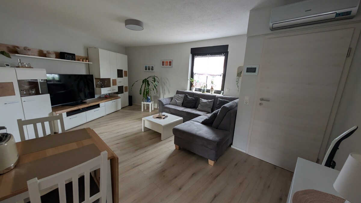 Nuestro apartamento en el sótano es ideal para viajeros solitarios o personas de negocios que buscan un hogar temporal acogedor. Ofrece un dormitorio, una sala de estar, una cocina separada y un baño privado. Hay una zona de estar al aire libre, perfecta para relajarse al aire libre. En el pasillo hay una cómoda, en el dormitorio un armario. En la sala de estar, encontrarás un escritorio para trabajar y un aparador con un televisor. Por supuesto, el wifi es gratuito.