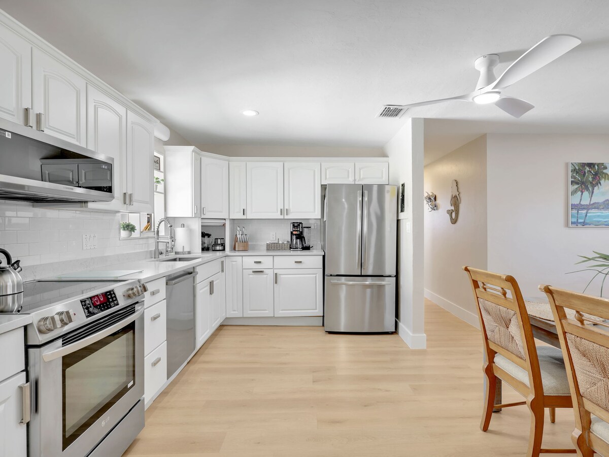 Cerca de las playas. Esta casa fue completamente renovada en 2020, tiene una cocina grande y espaciosa, nevera de cero grados y una gran sala de estar. Lavadora, secadora y electrodomésticos de tamaño completo. La sala de estar tiene una hermosa vista de un estanque rebosante de vida, tortugas, patos, garzas y peces. La casa se encuentra sola en una calle sin salida muy grande. Patio trasero privado con una valla de privacidad y estanque, para tu uso. (No hay zonas comunes). Los huéspedes dicen que las fotos no hacen justicia a esta unidad.