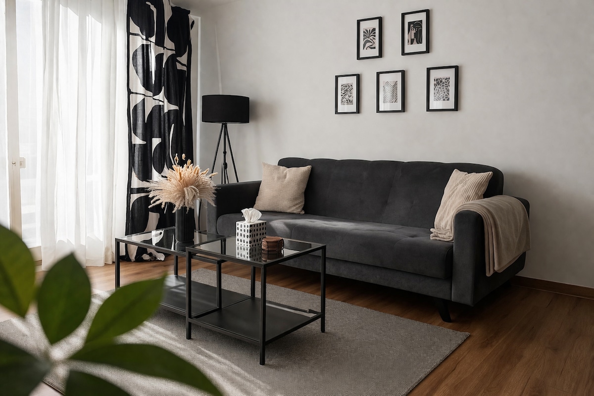 En las inmediaciones del Rin (5 min) y justo en el centro de Bonn se encuentra mi moderno apartamento en el corazón del distrito de Beuel, en una tranquila calle lateral. Puedes aparcar sin problemas en el aparcamiento subterráneo. Aprovecha el balcón, la cocina moderna o los programas de Sky en la televisión (Bundesliga :-) Con el ferry de pasajeros o a pie (15 min) o el tranvía (2 min) se llega rápidamente al centro de Bonn. El S-Bahn al aeropuerto o a Colonia se encuentra a 10 minutos a pie.