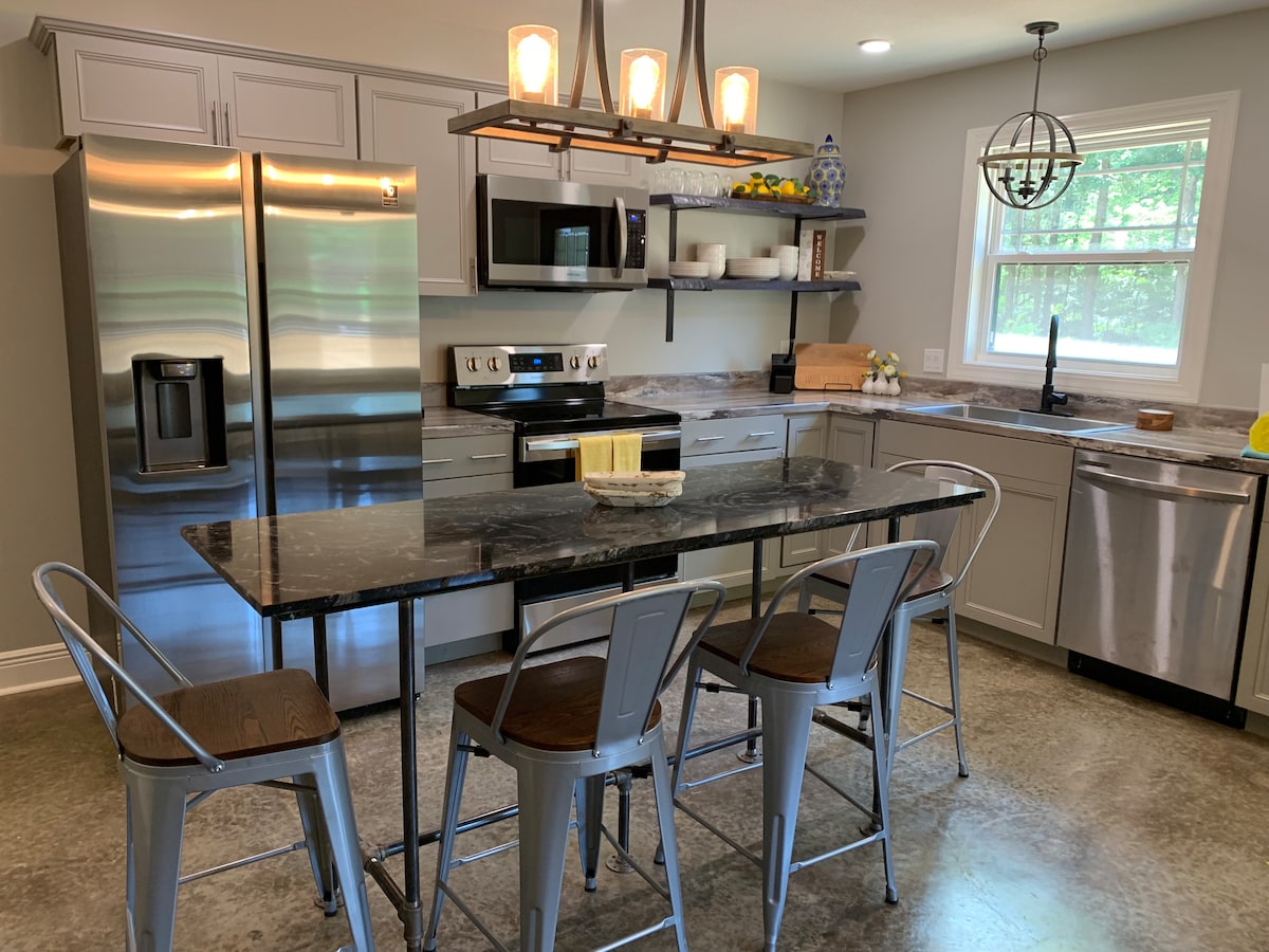 Welcome to your Home Away From Home! This modern, newly built retreat offers the perfect blend of style and comfort. Enjoy a spacious open-concept kitchen and living area with stainless steel appliances, granite countertops, and sleek acid-stained floors. Rest easy in large, beautifully furnished bedrooms and stay connected with lightning-fast Right Fiber internet. A security system ensures peace of mind during your stay. Your perfect getaway awaits!