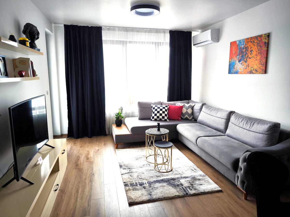 Enjoy a comfortable and stylish stay in this spacious city-center apartment, featuring a cozy bedroom, a living area with dining and desk spaces, a fully equipped kitchen, a modern bathroom, a separate toilet, and a private terrace. Free street parking is available nearby, and you’ll be just steps from South Park and the National Palace of Culture. With the metro only a 5-minute walk away and Bulgaria Mall 2 km from the apartment, it’s the perfect base for exploring the city!