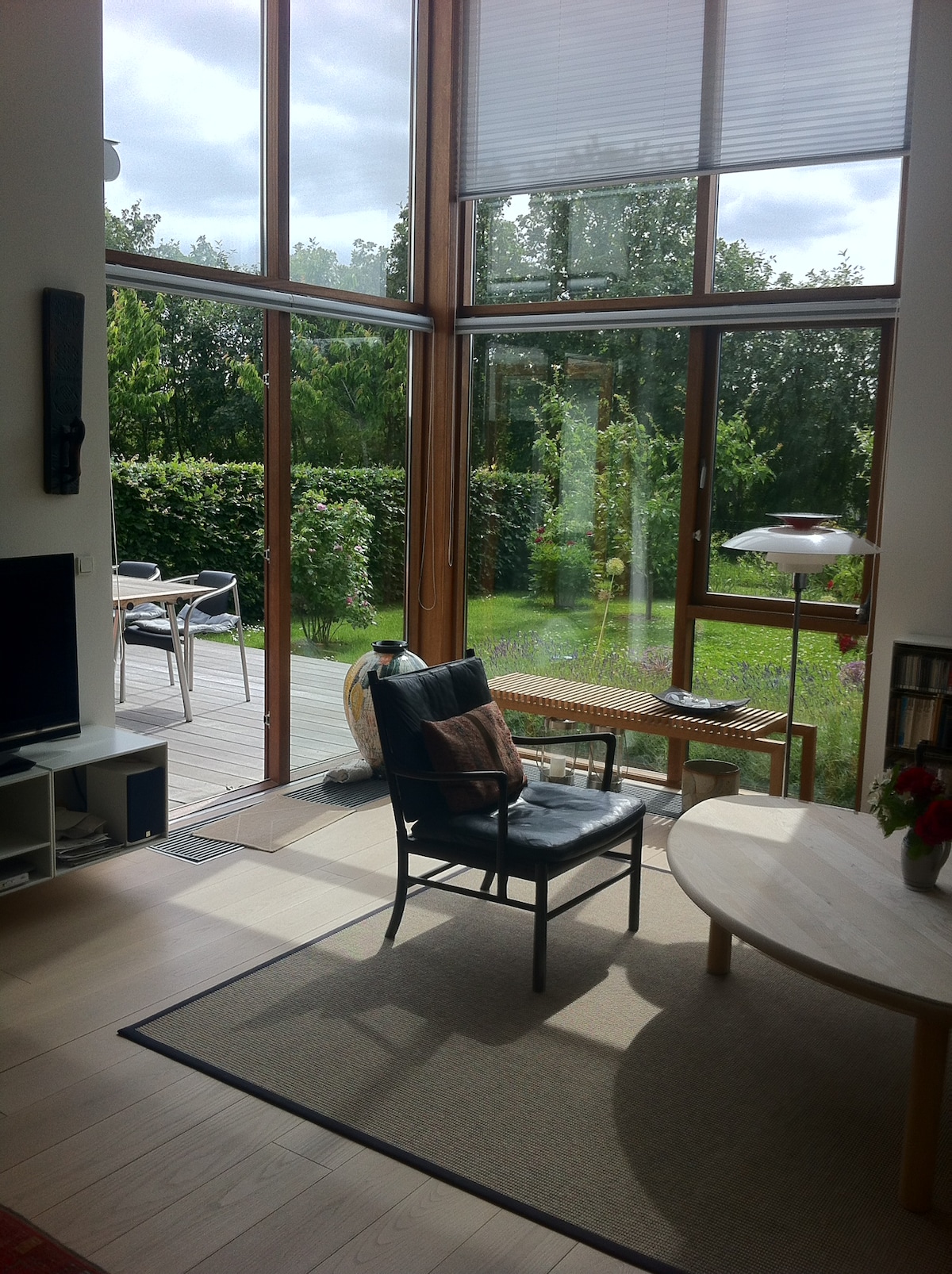 Our modern summerhouse is situated at Oroe in Isefjorden. The house lies on a 'hilly' plot owerlooking Isefjorden almost at the end of a gravel road. From the beach you can fish and swim. And then Oroe is only 1,5 hours drive from Copenhagen. If this house is booked, feel free to see our other house on Orø.