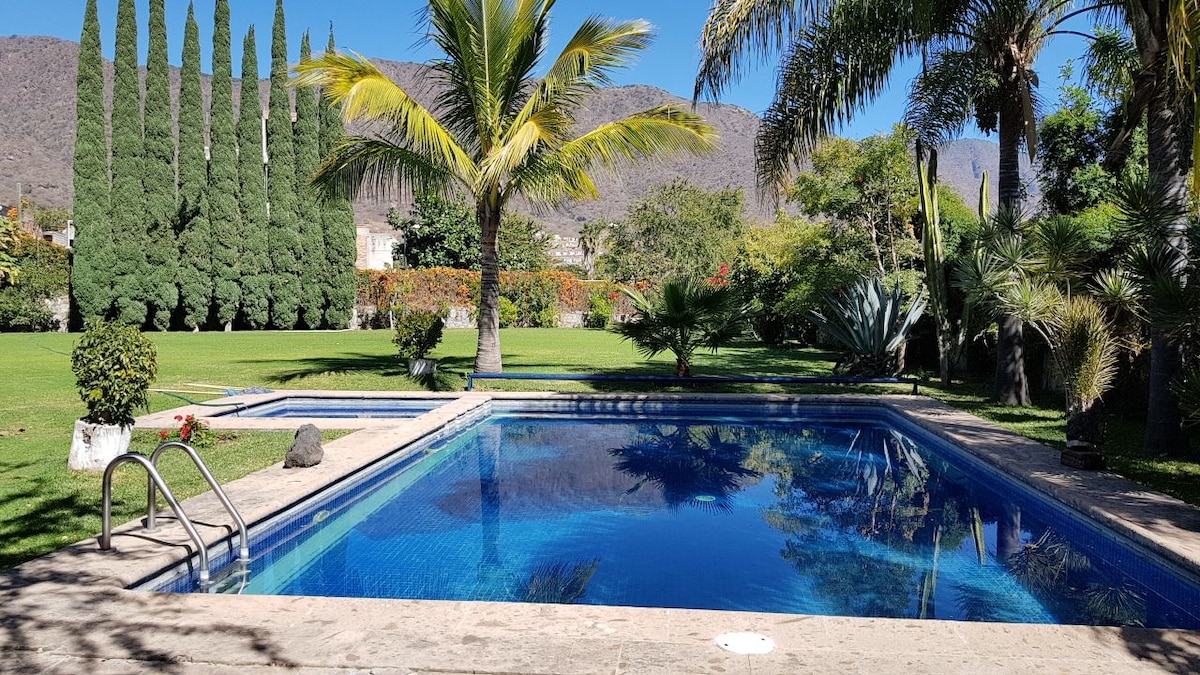 Hermosa casa de campo, a 10 minutos del aeropuerto, zona tranquila, piscina con agua templada, pantalla gigante increible de 3x2 mts. En área de alberca calentadores solares, y caldera de gas para temporada de frío la temperatura del agua será de 30 grados, si requieren más temperatura tiene un costo extra para el gas, comodidades de lujo Cada habitación cuenta con tv y tv 70 en terraza dos de ellas con tv por cable , cuenta con (Ping pong , billar, futbolito) 4 lugares estacionamiento