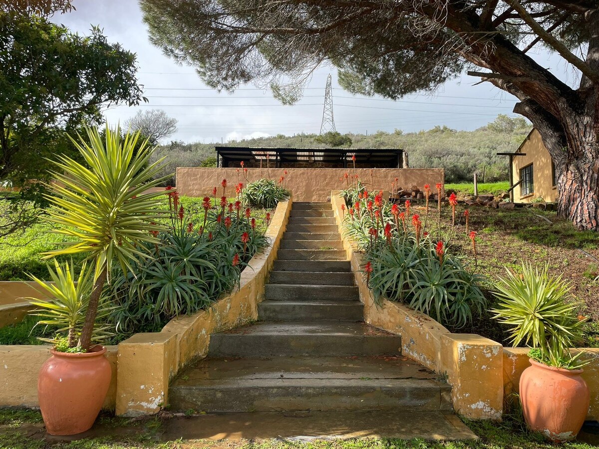Bienvenido a The Rosemary Hut, un encantador refugio rústico ubicado dentro de una granja de aceites esenciales, que ofrece vistas panorámicas del impresionante Overberg en Western Cape. Lo que distingue a esta unidad es su construcción única, con pacas de heno que forman las paredes interiores, exudando encanto rústico y calidez. Esta encantadora casa de campo ofrece el escenario perfecto para una escapada romántica como ninguna otra.