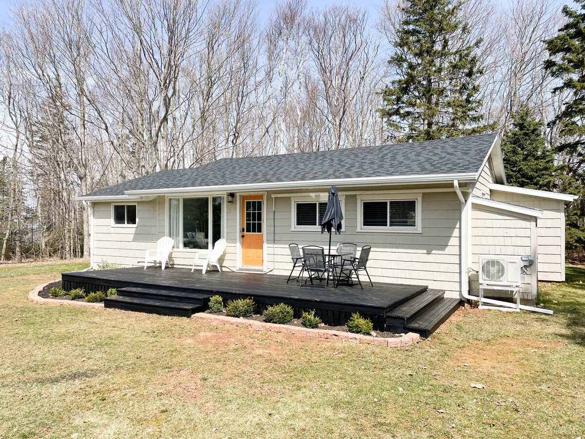 NEW for 2024 Fire Table!! ~ AIR CONDITIONING!!Beautiful, newly renovated two bedroom cottage in Chelton, Prince Edward Island. The cottage has a gorgeous ocean view from the front deck. Long walks on a sandy beach and breathtaking sunsets will make this your new home away from home, with Wifi and Satellite tv. As kids, our parents used to take us to the beach here at Chelton during the summer. Now we have made it a summer residence for our family. Licensed and Inspected by Tourism PEI.