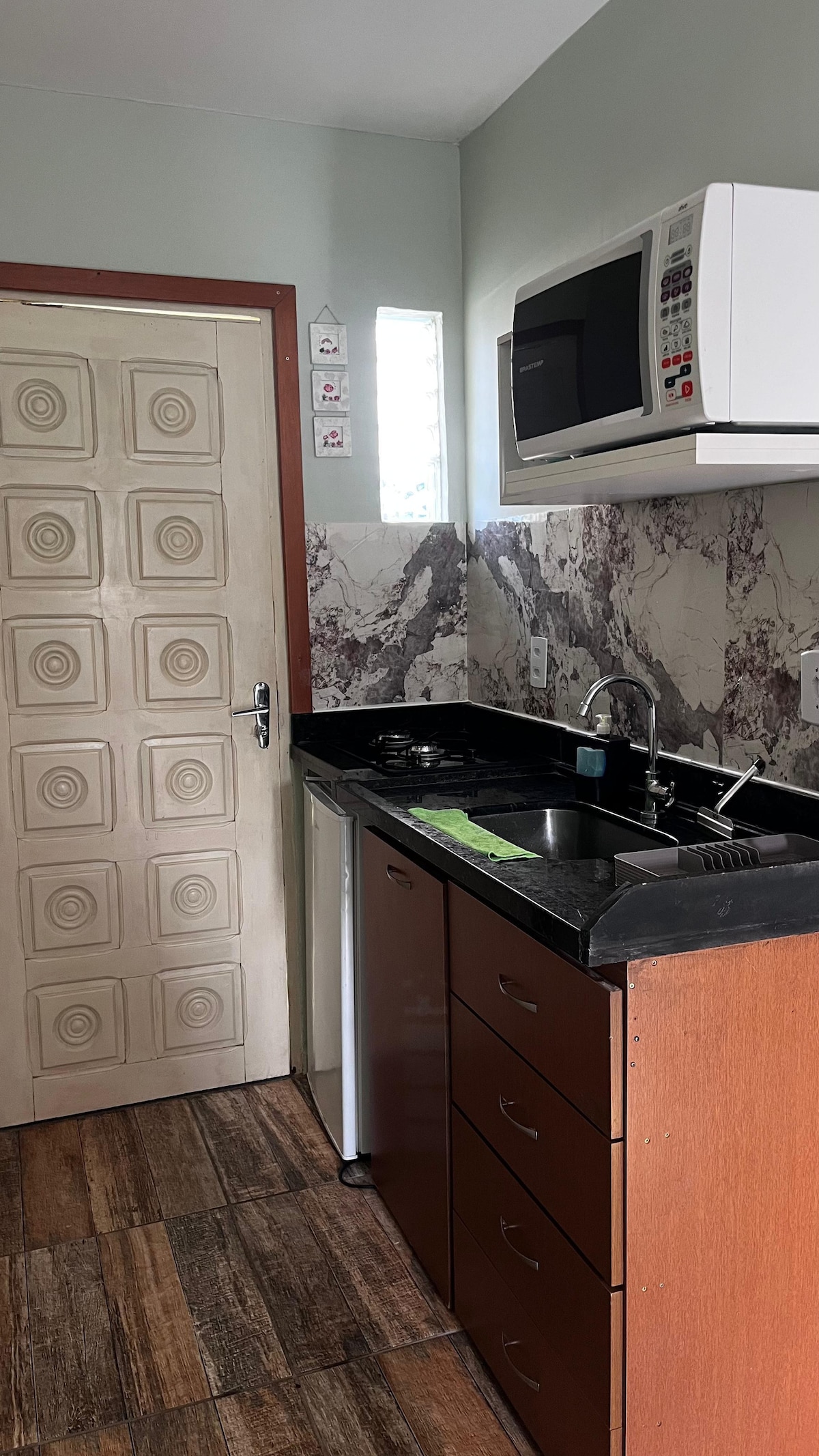 excelente estudio dentro de uma chacara acordar com canticos dos passaros e aproveitar o sussego da natureza com um belo pomar produtivo , campo de futebol , academia , bangalô e espaço lual para fazer uma fogueira , churrasqueira . incluso rouas de cama utensilios cafeteira ,microondas estadia curta perfeita