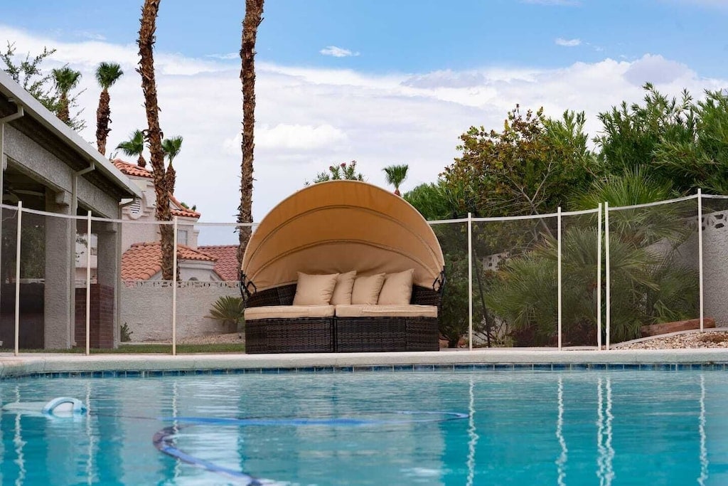 Looking for the perfect home to accommodate your group? Look no further; our sunny oasis awaits! Our spacious home, nestled in the Henderson neighborhood just outside Las Vegas, is the perfect group getaway. You can take a trip up to the Strip, or enjoy our sparkling swimming pool, multiple Smart TV's with major streaming sites, and BBQ in our private backyard. Surrounded by stunning golf clubs and restaurants, our beautiful three-bedroom home was intentionally designed for you!!