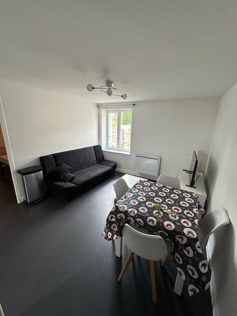 El apartamento está situado en el centro del pueblo, está situado en el primer piso sin ascensor de 60 m2, con 1 dormitorio de 14 m2, así como una sala de estar convertible en dormitorio equipado con un cómodo sofá cama con colchón. Es muy agradable y luminoso, con una decoración cuidada al gusto del día. Uno se siente bien y el ambiente es moderno y acogedor al mismo tiempo. Para visitar en las cercanías (2 km), el magnífico y famoso ZOO SAFARI PEAUGRES Llegada autónoma 24/24 7/7 Lavandería y limpieza incluidas Wifi