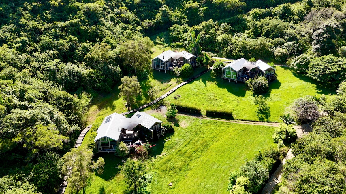 Encantadora villa situada en el medio rural, a 5-7 minutos de las playas de la Roche Percée y Poé y la finca de Déva (caminatas) y a 15 minutos del pueblo. En lo alto de una colina, disfruta del viento del mar y ofrece buenas vistas despejadas a la montaña y al cielo. Lugar tranquilo y sereno (no se permiten fiestas). Casa no apta para niños ni mascotas. Nota: la tarifa para 2 personas incluye una sola habitación. Posibilidad de alquilar la segunda habitación con un suplemento.